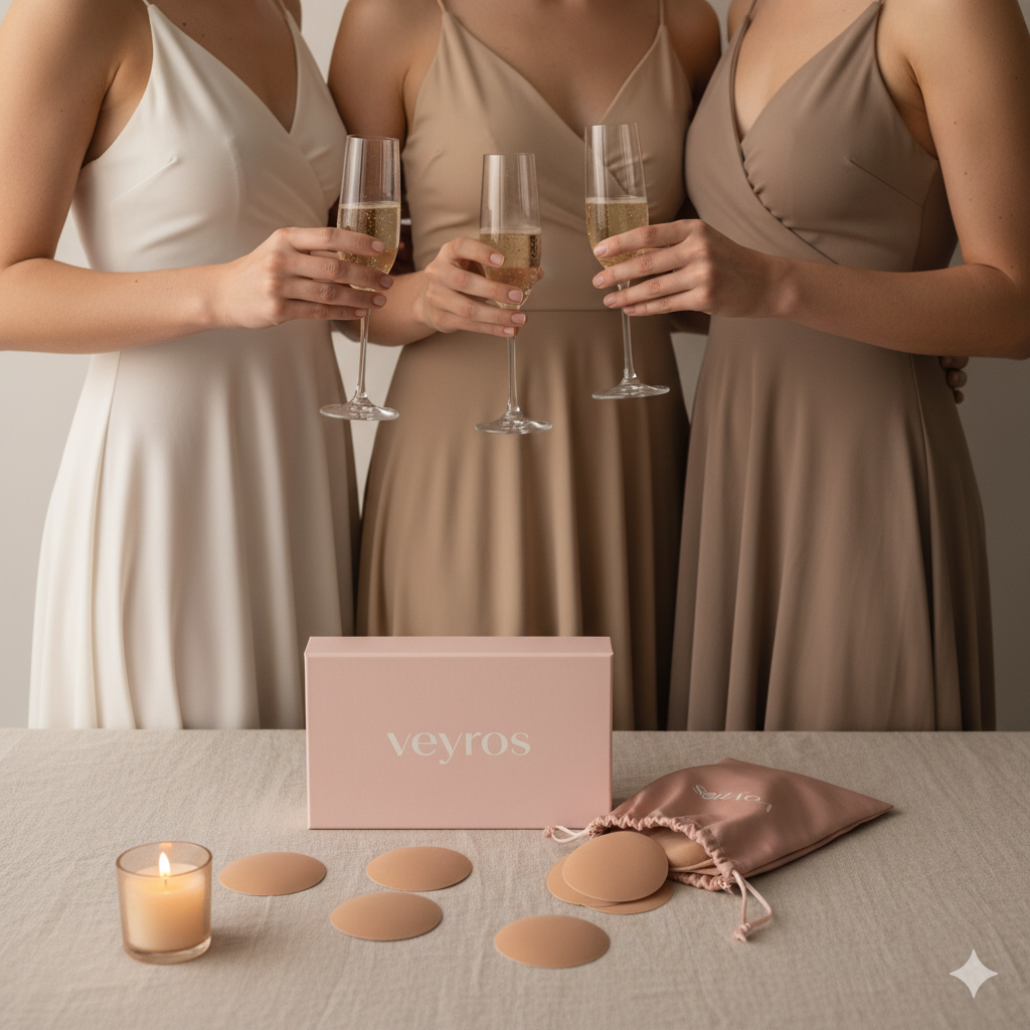 Every woman deserves a perfect match. That’s why Veyros offers nipple covers in multiple sizes (7cm to 10cm) and skin tones — from light and dark to our signature champagne shade. Choose your ideal fit and experience a barely-there comfort that feels like your own skin — discreet, secure, and beautifully natural.